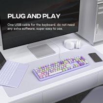 • Computer Keyboard Wired, Plug and Play USB Retro Round Typewriter Keyboard, Full Size Wired Keyboard with Foldable Stands for Laptop and Office PC- Purple Colorful