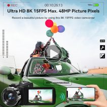 Video Camera, 8K Camcorder 48MP 15FPS UHD WiFi Vlogging Camera with IR Night Vision for YouTube, 3″ Touch Screen 18X Digital Zoom, with Fill Light, Mic, Stabilizer, Lens Hood, Remote and 2 Batteries