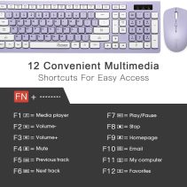 Wireless Keyboard and Mouse Combo, Full-Sized Wireless Keyboard and Adjustable DPI Mouse, 2.4GHz USB Receiver, Wireless Keyboard and Mouse for PC, Windows, Desktop, Laptop (Purple)